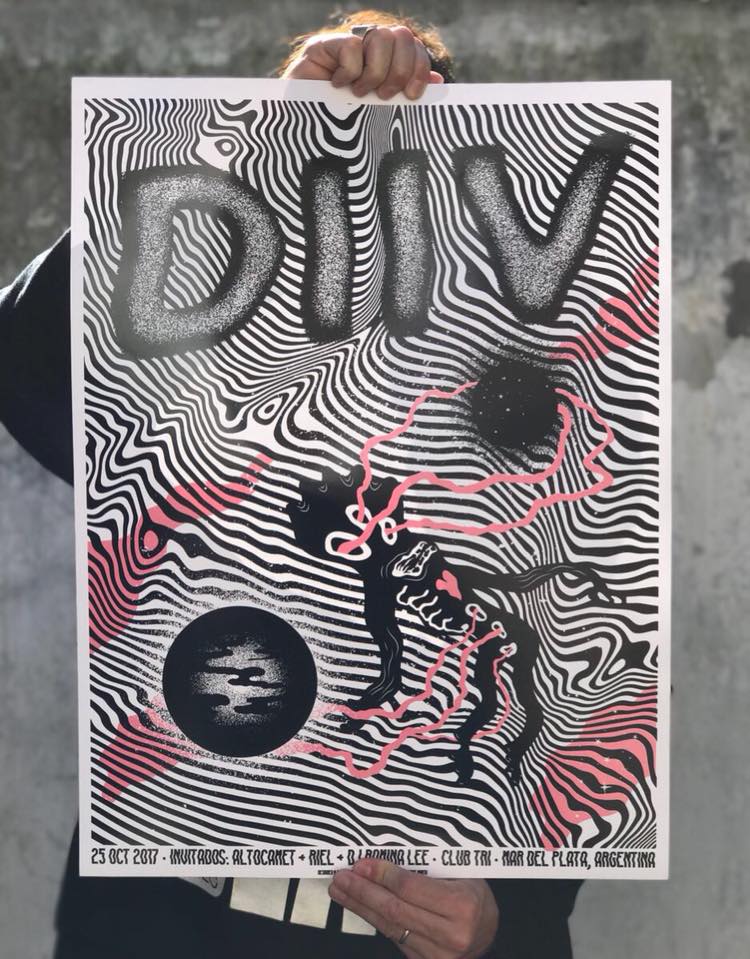 SERIGRAFÍAS SCREEN PRINTS Mandiboola @ Club TRI / 2 UV inks screnn print on 300 gr. paper / 46 x 62 cm. (18 x 24″) / 2017 DIIV / 2 UV inks screnn print on 300 gr. paper / 46 x 62 cm. (18 x 24″) / 2017 SOLD OUT! SOLD OUT! SOLD OUT! Share this: Click to share on X (Opens in new window) X Click to share on Facebook (Opens in new window) Facebook